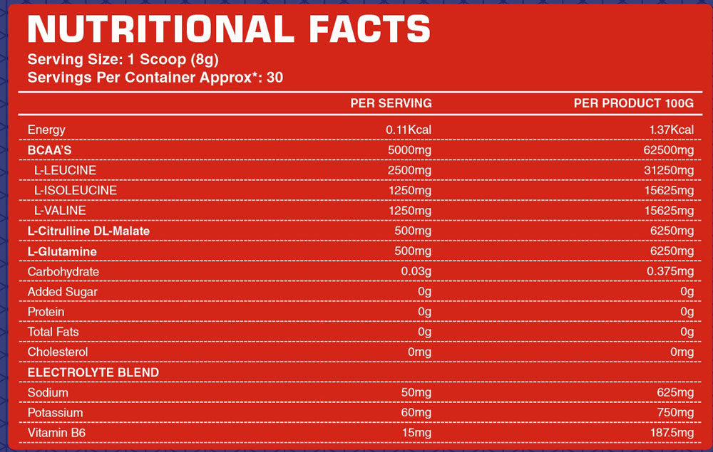 BCAA supplements are effective because of their higher leucine content - approx 5.6g of leucine per serving with a ratio of 8:1:1 of Leucine, Isoleucine and Valine respectively. Leucine speeds up the muscle recovery process and helps in good muscle growth.